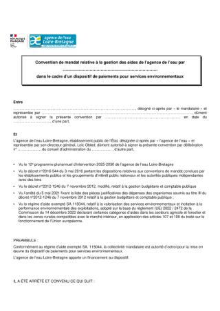Annexe 3 - Convention de mandat relative à la gestion des aides de l’agence de l’eau dans le cadre d’un dispositif de paiements pour services environnementaux