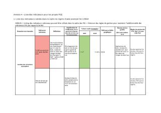 Annexe 4 - Liste des indicateurs pour les projets PSE